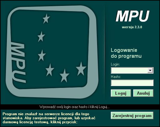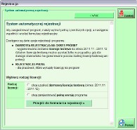 W wersjach niezarejstrowanych System dostępny jest już w oknie logowania do programu. Po kliknięciu przycisku 'Zarejestruj program' uruchomiony zostanie moduł rejestracji (rysunki poniżej).